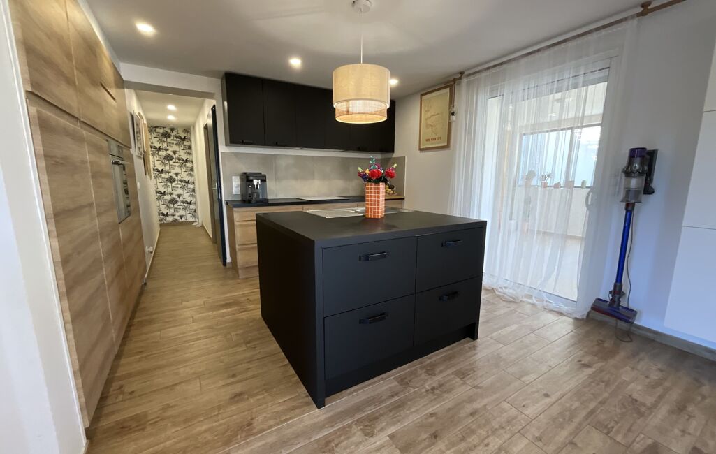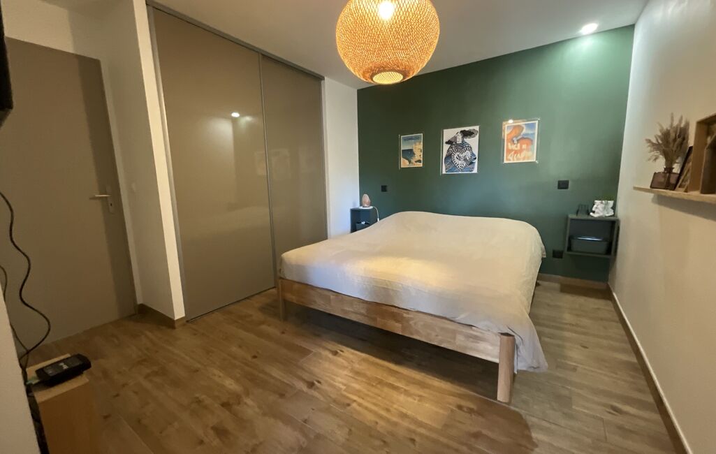 Le bien est composé d'une entrée, d'un spacieux séjour avec cuisine ouverte, de trois chambres, d'une salle de bains, d'un wc séparé et d'une buanderie. Toutes les pièces sont dotées de prestations et de matériaux de qualité comme les menuiseries aluminium à galandages, les volets roulants électriques, la climatisation réversible, la cuisine totalement équipée. Il offre également beaucoup de fonctionnalité grâce à ses nombreux rangements (placards, dressings).